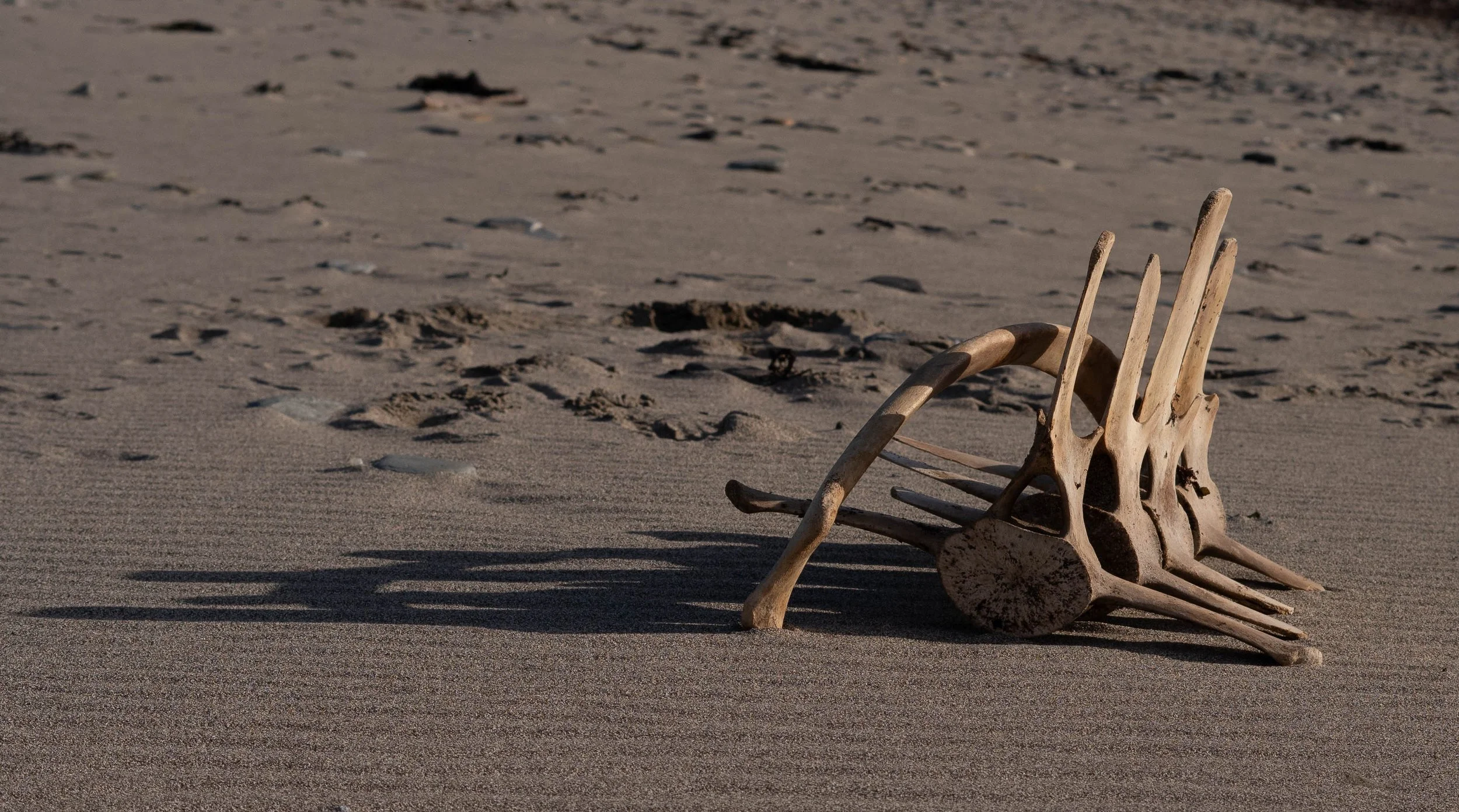 Collaborative and site specific installation work using whale bones washed up on Birsay Beach.